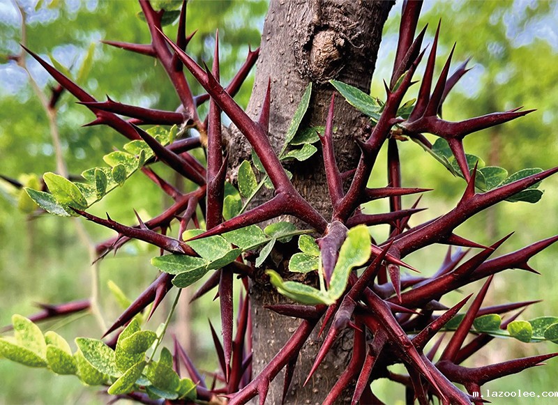 皂角树多年生枝,以及树干生长棘刺,棘刺多数分枝,刺粗壮,通常分枝即刺上长刺。皂角刺入药可活血并治疮癣,消肿排脓,搜风拔毒等等。药用价值很高。
